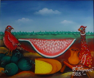 Künstler: Franjo Filipovic, geboren 1930 in Hlebine - begann 1946 zu Malen - Er stellte seit 1946 aus.